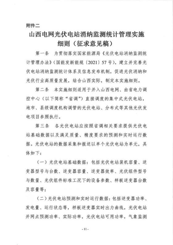 7月26日,山西能源監(jiān)管辦發(fā)布《山西電網(wǎng)光伏電站消納監(jiān)測統(tǒng)計管理實施細則(征求意見稿)》。