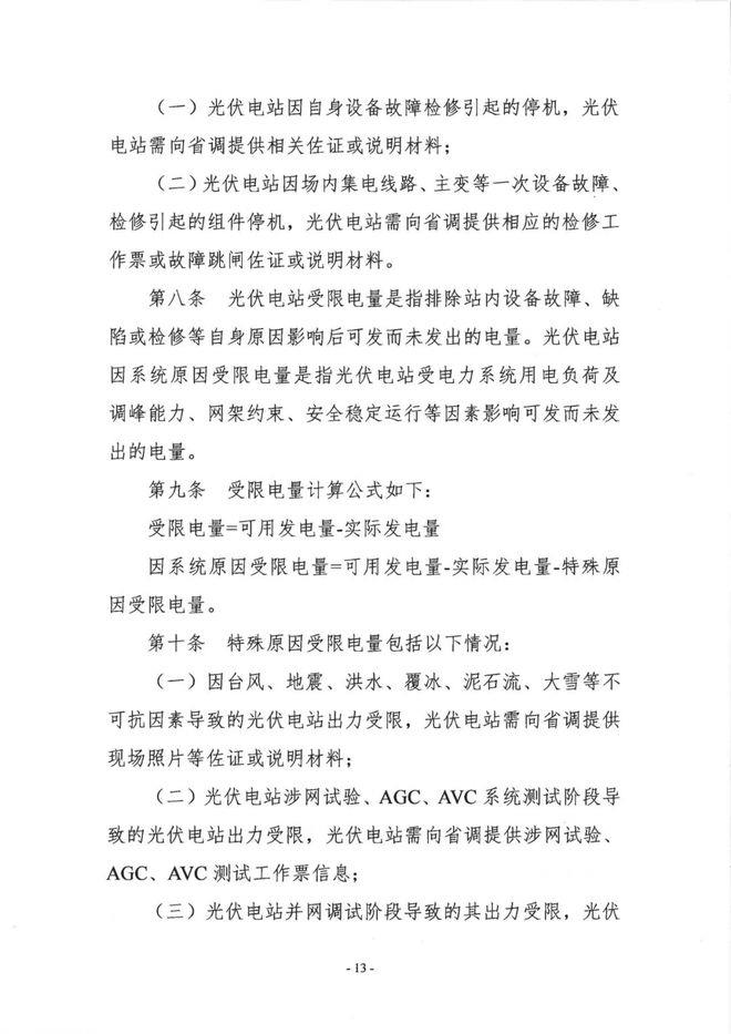 (一)光伏電站因自身設備故障檢修引起的停機,光伏電站需向省調(diào)提供相關(guān)佐證或說明材料;