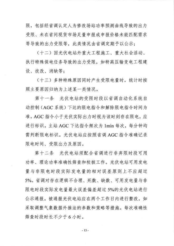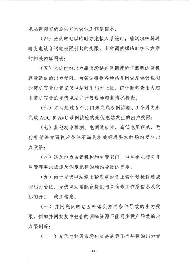 并網(wǎng)超過6個月內(nèi)未完成涉網(wǎng)試驗、3個月內(nèi)未完成AGC和AVC涉網(wǎng)試驗的光伏電站發(fā)生的出力受限;